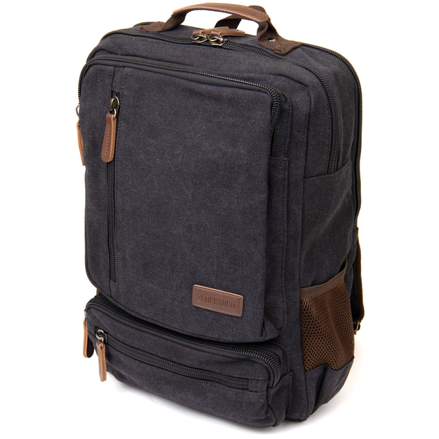 Рюкзак для ноутбука дорожній текстильний унісекс на два відділення чорний 31х42х16 см Vintage 20611