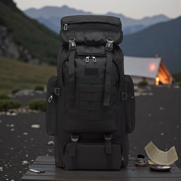 Військовий тактичний рюкзак 80л Oxford 600D водонепроникний зі системою Molle штурмовий Черный