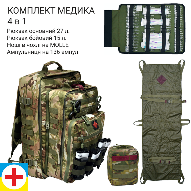 Рюкзак бойового медика ноші ампульниця комплект 4в1 DERBY RBM-6 + HM-2 + AM-136 мультикам