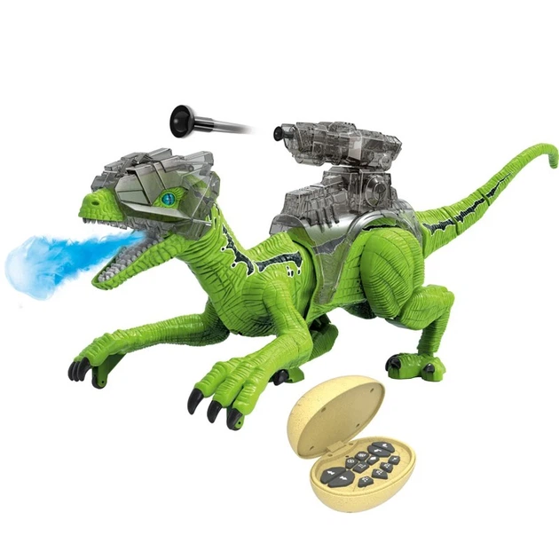 Іграшка Динозавр Радіокерований з Паровим Ефектом Інтерактивний Робот на Акумуляторі зі Світлом та Звуком Велоцираптор Зелен