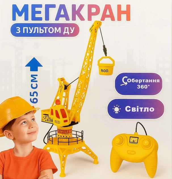 Іграшковий підйомний кран на радіокеруванні з пультом 65 см, 360° обертання, світло, батарейки, дитячий будівельний кран