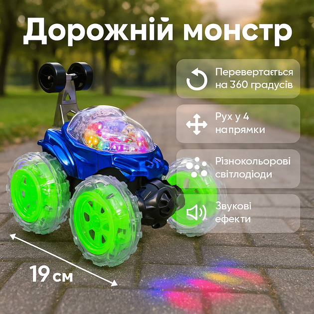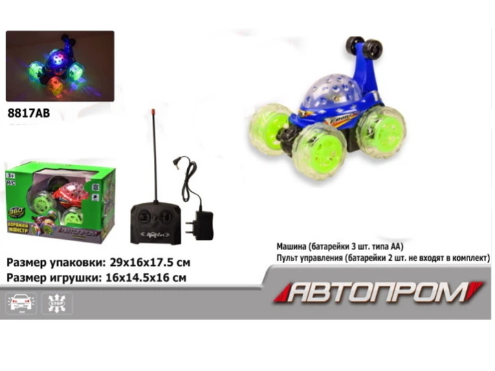 Радіокерована іграшкова машинка Дорожній Монстр – світлодіодні колеса, Автопром, працює від батарейок
