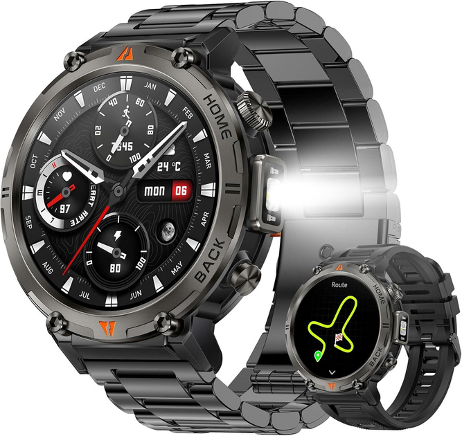 Розумний годинник TactiX для чоловіків з LED-ліхтариком, дзвінками, тонометром для iPhone та Android, чоловічий фітнес треке