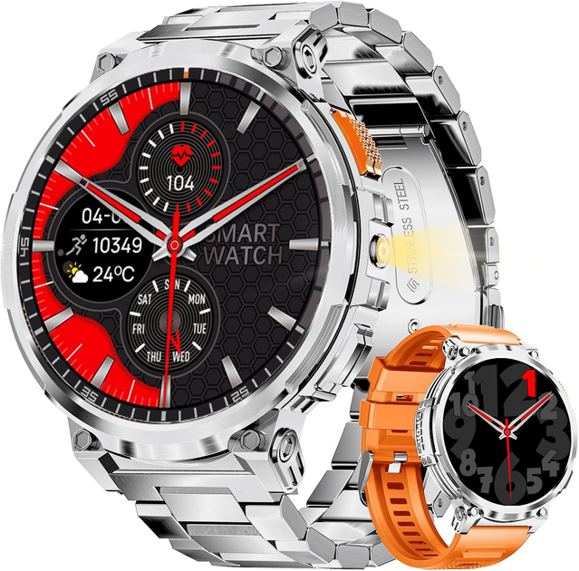 Смарт-годинник для чоловіків KC89 1.85” з LED-ліхтариком, військовий тактичний HD дисплей, дзвінки iOS Android