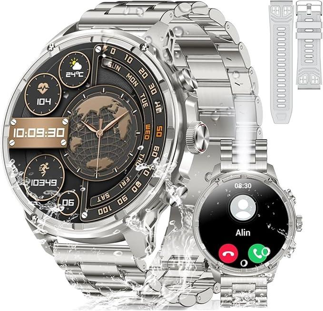Смарт-годинник Rollstimi Smart Watch з тиском, пульсом, киснем, дзвінками для Android та iPhone, металевий корпус, 2 ремінці