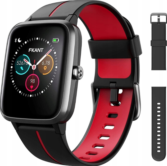 Смарт-годинник Fkant 33mm / GPS / Bluetooth / Вологозахист 5 АТМ / До 10 днів роботи / Black-Red