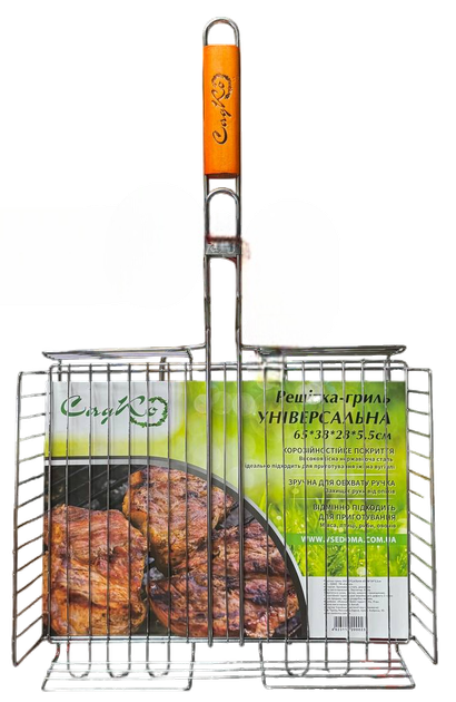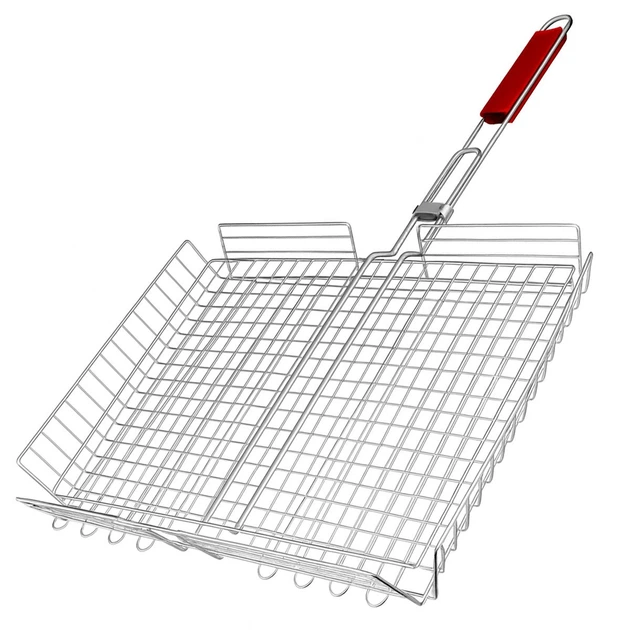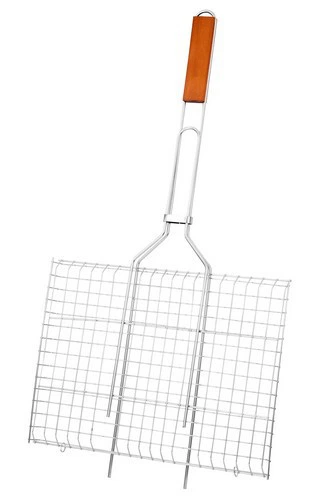 Решітка-гриль з високим бортом, 31х25х5cm, нержавіюча сталь, дерев'яна ручка