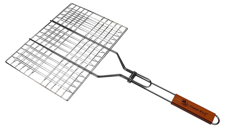 Решітка для гриля ProDobro універсальна хромована сталева для м'яса та овочів з дерев'яною ручкою (532772)