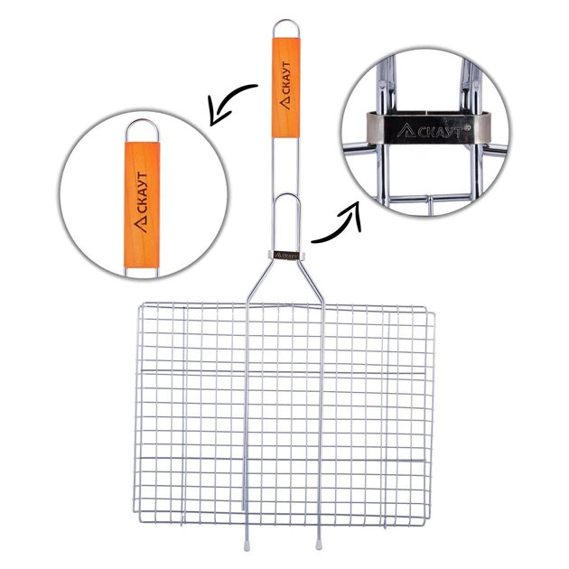 Решітка для гриля 27х24х2,5 см. із хромованої сталі Kamille СКАУТ із дерев'яною ручкою