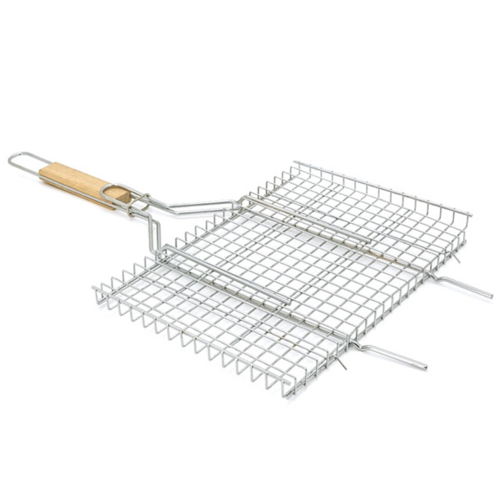 Легко моется и очищается. Длинная ручка с деревянным наконечником не нагревается. Благодаря хромированному покрытию решётка не подвергается воздействию высоких температур и не деформируется.