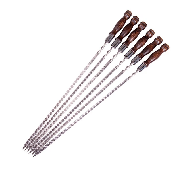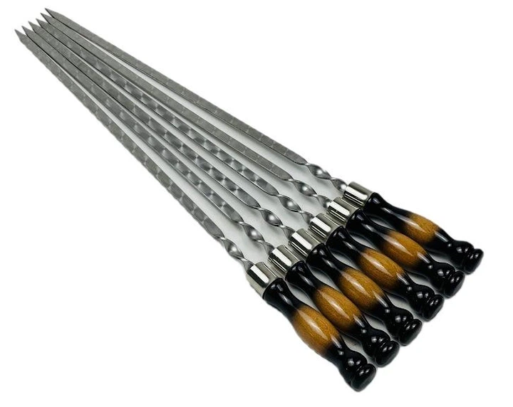 Шампура нержавіюча сталь 63 см з дерев'яною ручкою 6 шт (80-10-SH-3105)