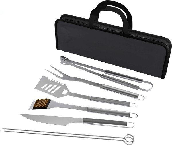 Подарунковий набір інструментів для грилю,мангалу та барбекю у сумці, інвентар 7 предметів з нержавіючої сталі