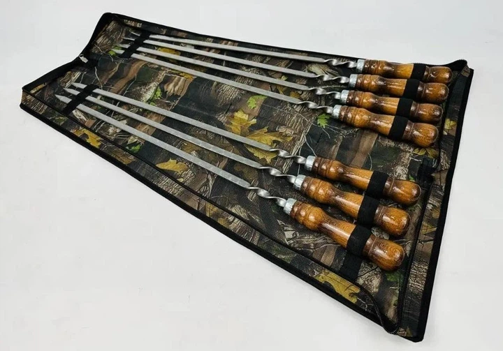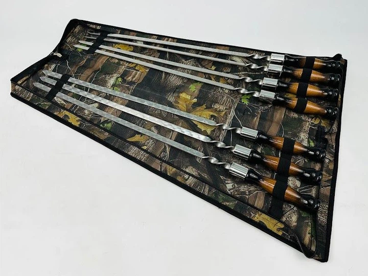 Набір шампурів з нержавіючої сталі та деревяними ручками на 7 предметів Камуфляж (135-10-NB-2270)
