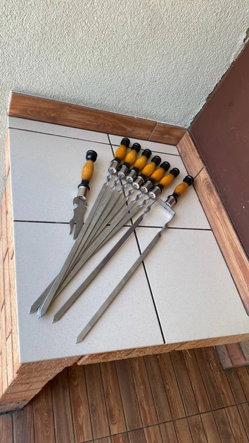 Набір шампурів з нержавіючої сталі та дерев'яною ручкою