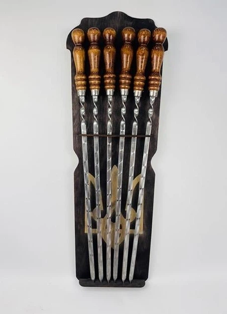 Настінний набір шампурів із нержавіючої сталі 6 шт на підставці з дерева Коричневий (127-10-NB-4001)