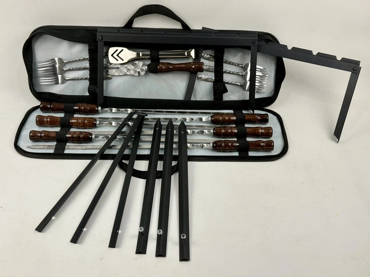Великий набір 15 шампурів 600х10х3мм нержавіюча сталь міцні дерев'яна ручка Україна