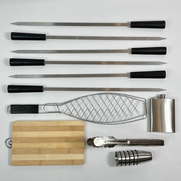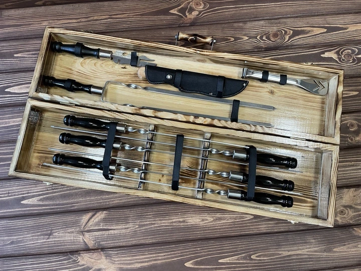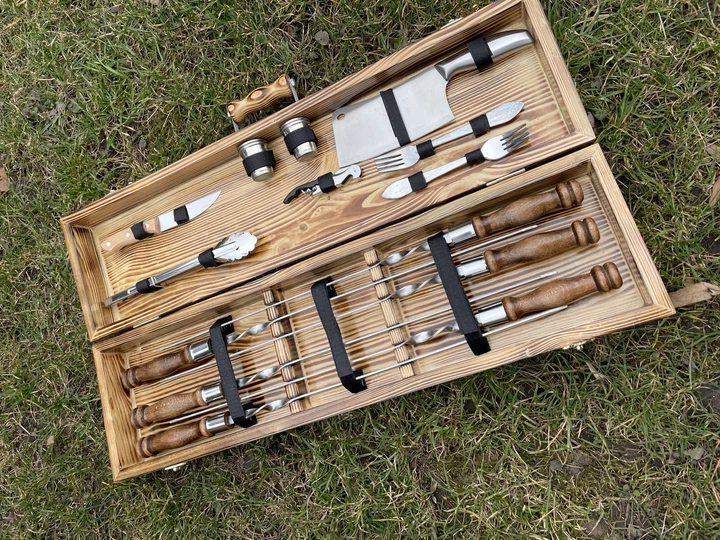 Набір шампурів для пікніка в дерев'яному кейсі з нержавіючої сталі ручна робота 16 предметів (80-10-KS-7614)