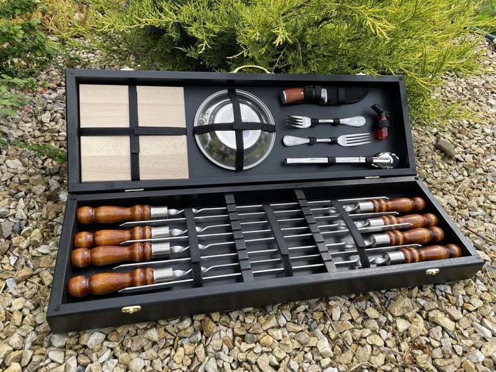 Набір шампурів для шашлику в дерев'яний кейс на подарунок чоловікові