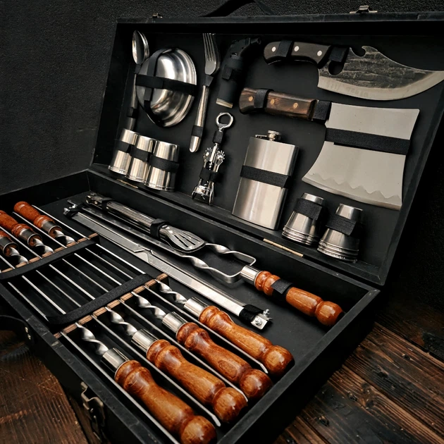 Подарунковий набір Каспій Кейс Стіл Трансформер Для Гриля Пікніка Мангала N196 23 предметів