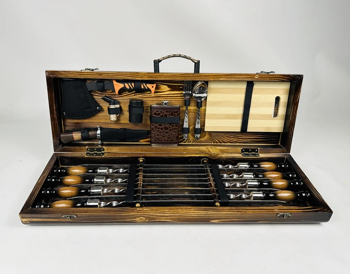 Набір шампурів для пікніка uwest Подарунок зятю на свято день народження Г006 + доска соусниця