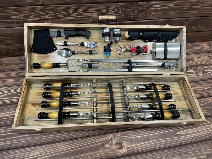 Набір шампурів Гопак на Вогні в дерев'яному кейсі Подарунковий набір для пікніка (KS-7618)