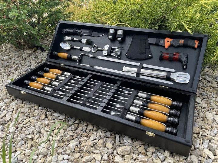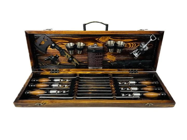 Набір шампурів BBQ Elite в дерев'яному кейсі Подарунковий набір для пікніка (KS-7504)