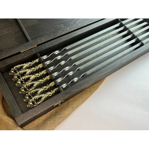 Комплект шампурів "Морський бриз" у кейсі з натурального дерева.