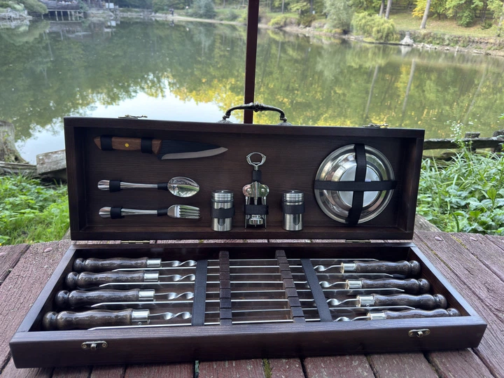 Подарунковий набір Кейс-столик Piknik №4 Шашличний набір. Подарунок чоловікові