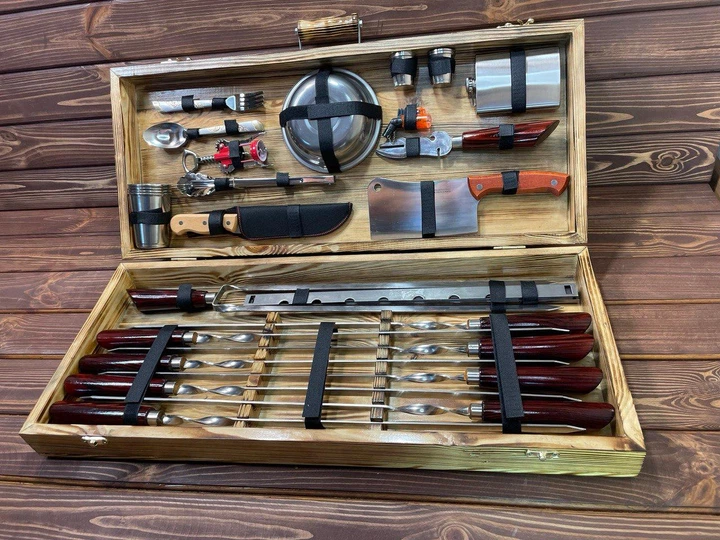 Набір шампурів De Luxet в дерев'яному кейсі Подарунковий набір для пікніка (KS-7503)
