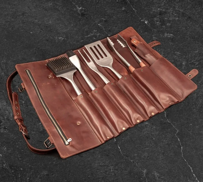 Подарунковий набір для гриля барбекю та мангалу в шкіряному кейсі з 6 предметів LC-037