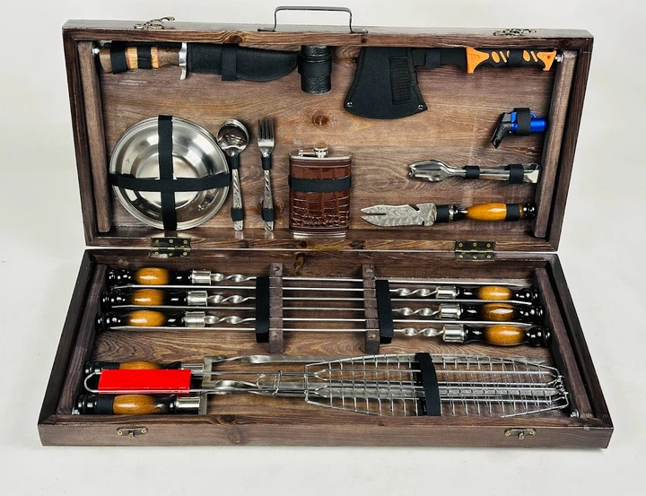Набір шампурів Noble Fire в дерев'яному кейсі Подарунковий набір для пікніка (KS-7510)