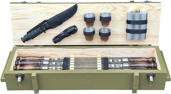 Подарунковий набір шампурів Metalzavod Мілітарі в дерев'яному кейсі Оливковий (PN-Militari-OLV)
