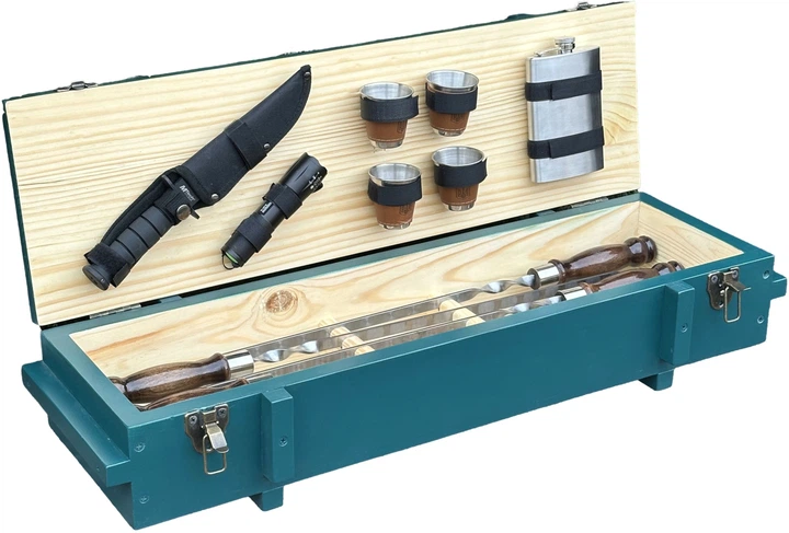 Подарунковий набір шампурів Metalzavod Мілітарі в дерев'яному кейсі Бірюзовий (PN-Militari-BRZ)