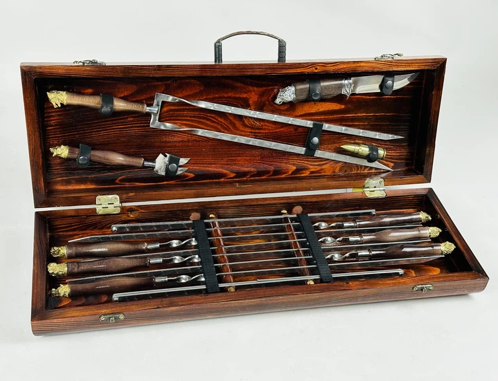 Подарунковий набір шампурів у кейсі-столику Grill Master Pro №2 R. Шашличний набір. Подарунок на свято