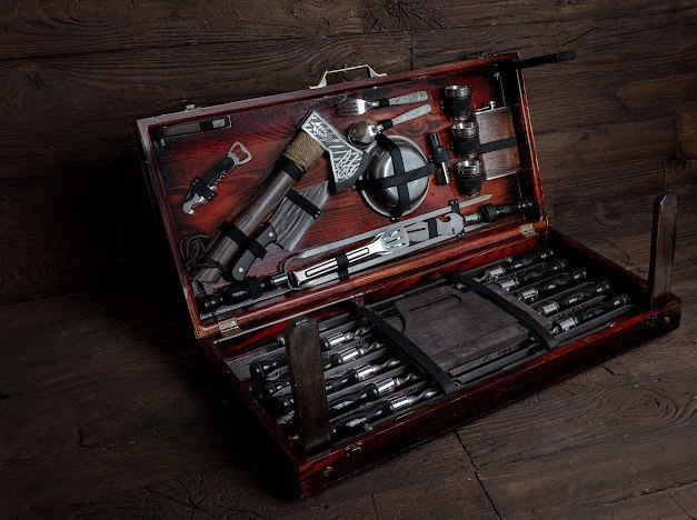 Подарунковий набір Кейс-столик 1-2 Шашличний набір. Подарунок братові