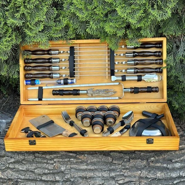 Набір шампурів Люкс Сокіл 8 предметів у дерев'яному кейсі з бука 47330187