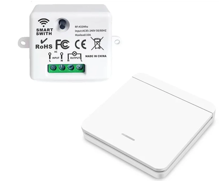 Міні бездротовий реле-перемикач + настінний вимикач 433 МГц RF – комплект дистанційного керування світлом, технікою, автомат