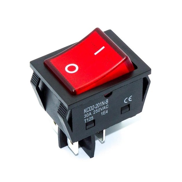 Перемикач клавішний, широкий KCD2-201N-B, 30A, підсвічування 220V, 4pin синій