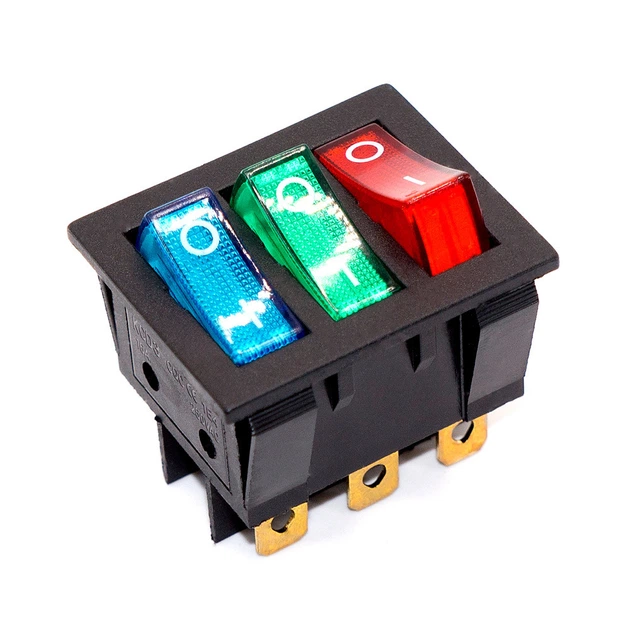 Перемикач клавішний потрійний KCD2-3-3101N, 16A, 9pin, підсвічування 220V, RGB