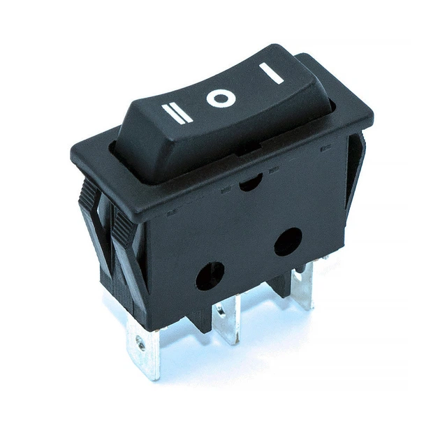 Перемикач клавішний KCD3-4-123 вузький, без фіксації, 15А, 3pin, чорний, (ON)-OFF-(ON)