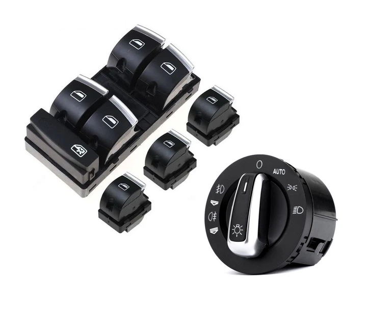 Блок кнопок склопідйомників та перемикач світла (набір №2) AUDI A3, A6, Q7, S3, S6, RS3, RS6 Allroad Хром