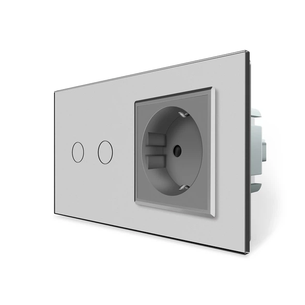 Розумний сенсорний EC вимикач 2 сенсора 1 розетка Livolo сірий скло (VL-M7FC2Z2/FCTC16A-2IP)