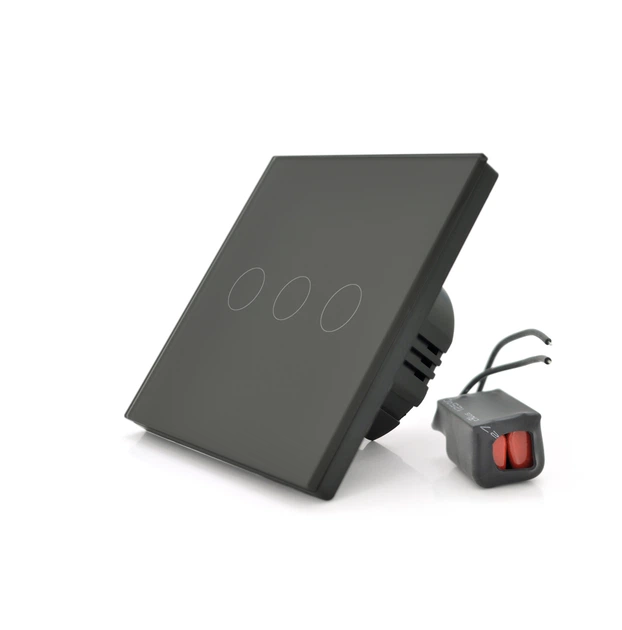 Сенсорний вимикач без заземлення + WiFi керування, триканальний, чорний, 86х86х35мм