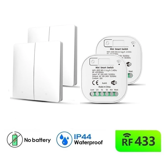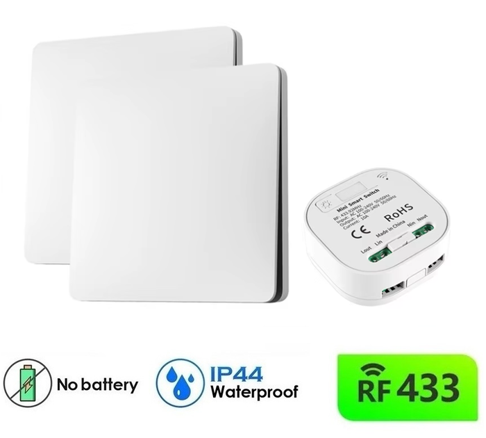 Бездротовий вимикач подвійний кінетичний Inted RB4 з двома клавішами і реле