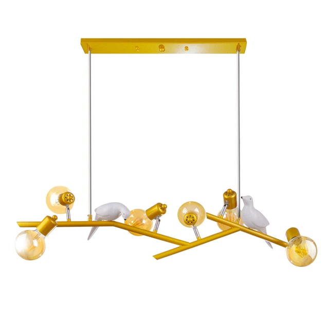 Підвісна люстра на планці із 6 золотистими плафонами кулями декорована птахами Brille BR-01 660S/6 E27 G