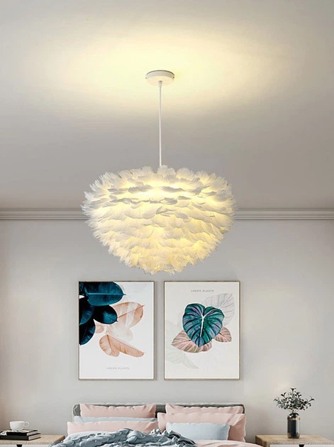 Люстра підвісна з пір'ям на 3 лампочки 27296 Білий 40-120х60х60 см. 4629821