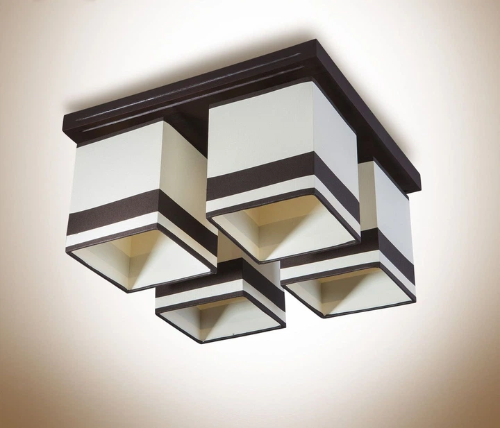 Квадратна люстра 4 лампова, дерев'яна з абажурами для зали, спальні 19004-1