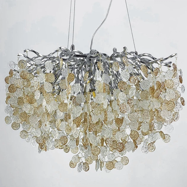 Люстра в хромовому корпусі з пластинами з комбінованого скла Line.F MD 9046 CH