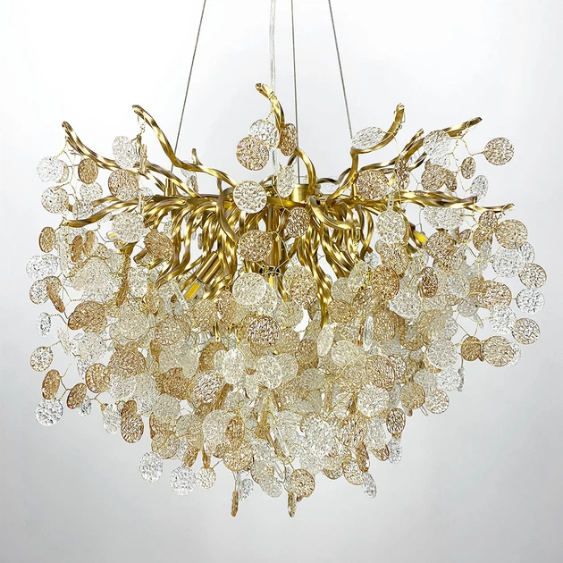Люстра в золотистому корпусі із пластинами з комбінованого скла Line.F MD 9046 GD