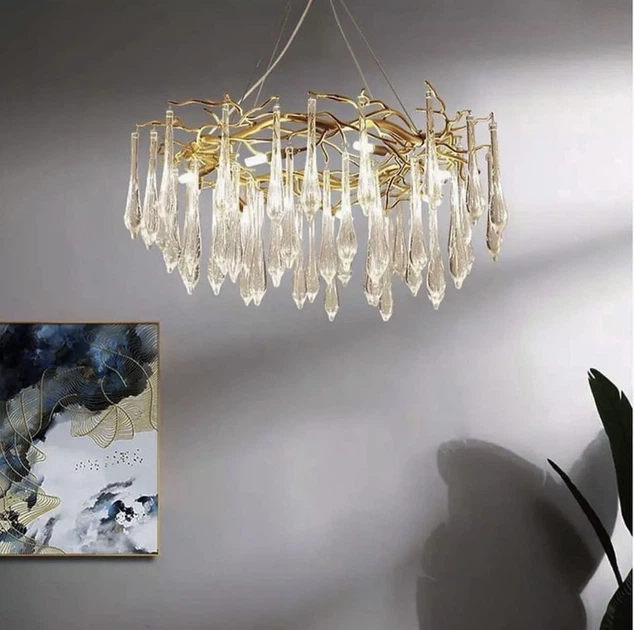 Розкішна люстра у золоті зі скляними підвісами | Line F | Арт. MD 9006 GD